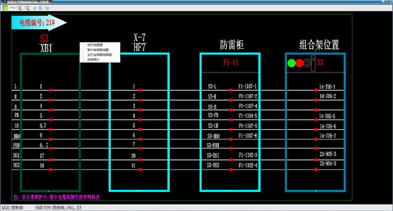 該系統(tǒng)可設(shè)計、繪制出規(guī)范的電纜徑路圖,并對完成的電纜徑路圖進行自動識別,如各條主電纜的徑路結(jié)構(gòu)、箱盒類型、連接設(shè)備的